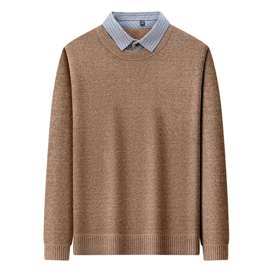 2025 Autumn and Winter Fashionable Men's Business Wear with A Lapel and Lined Sweater with An Inner Knitted Shirt