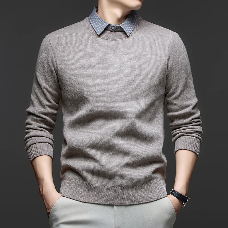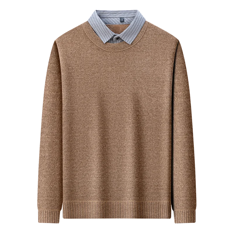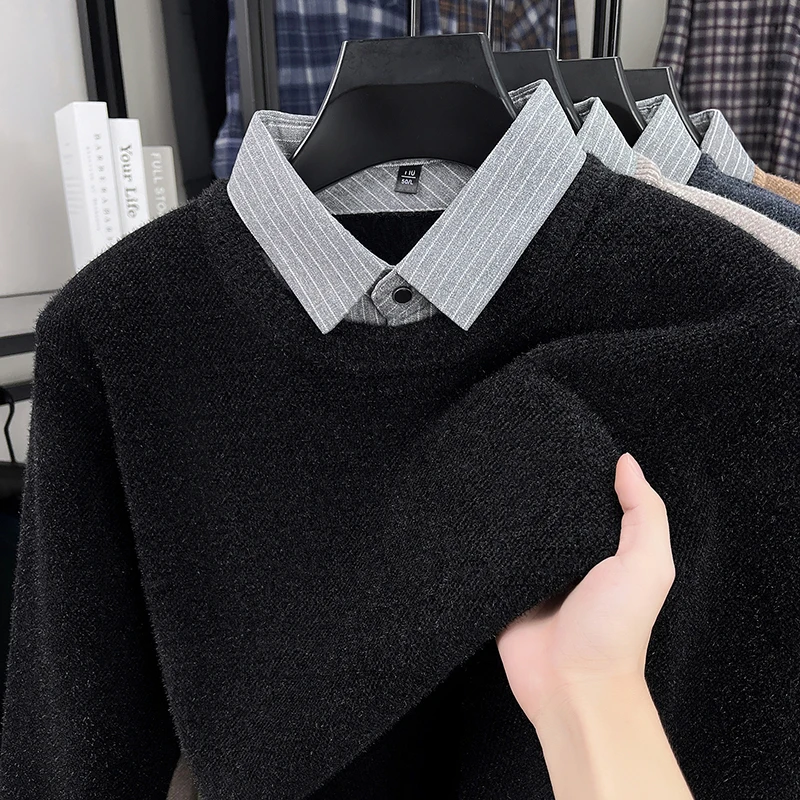 2025 Autumn and Winter Fashionable Men's Business Wear with A Lapel and Lined Sweater with An Inner Knitted Shirt