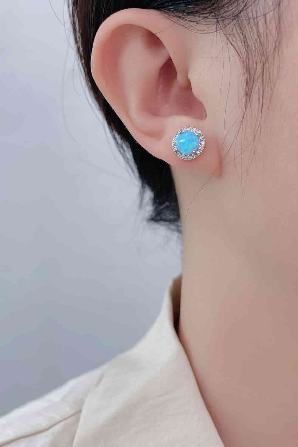 925 Sterling Silver Platinum-Plated Opal Round Stud Earrings