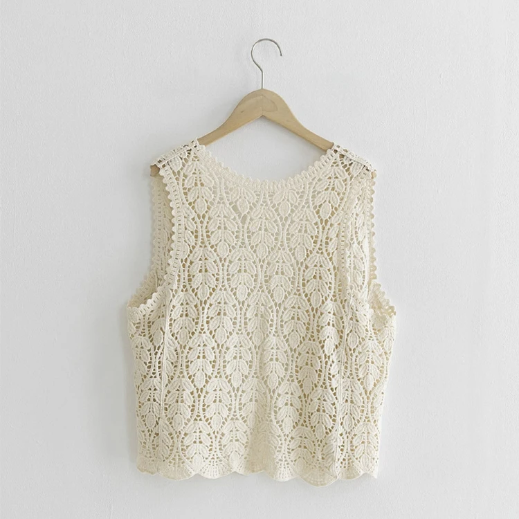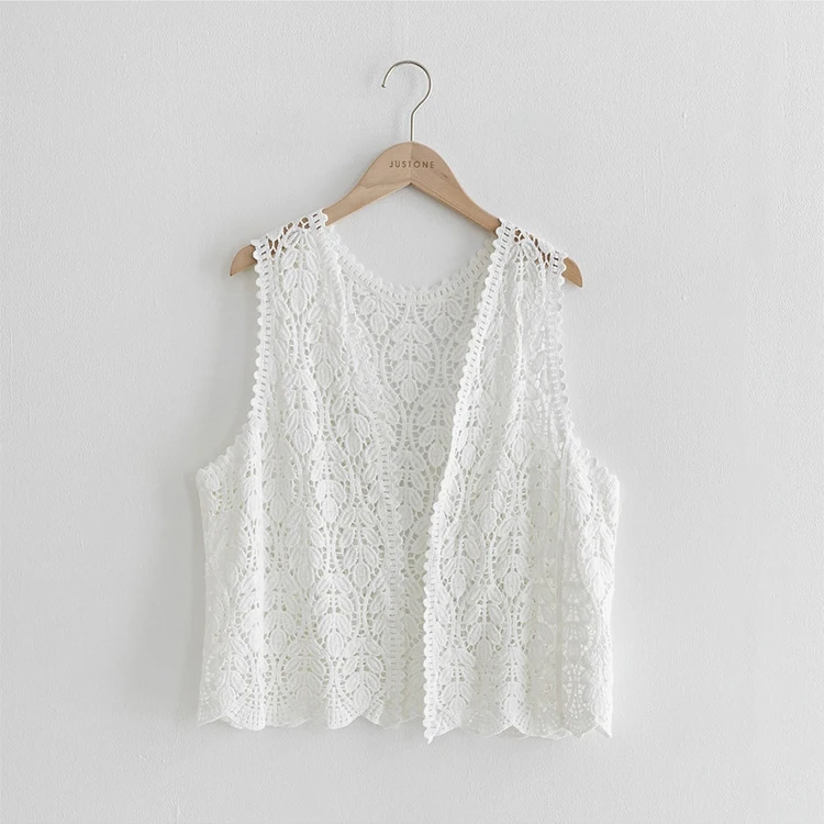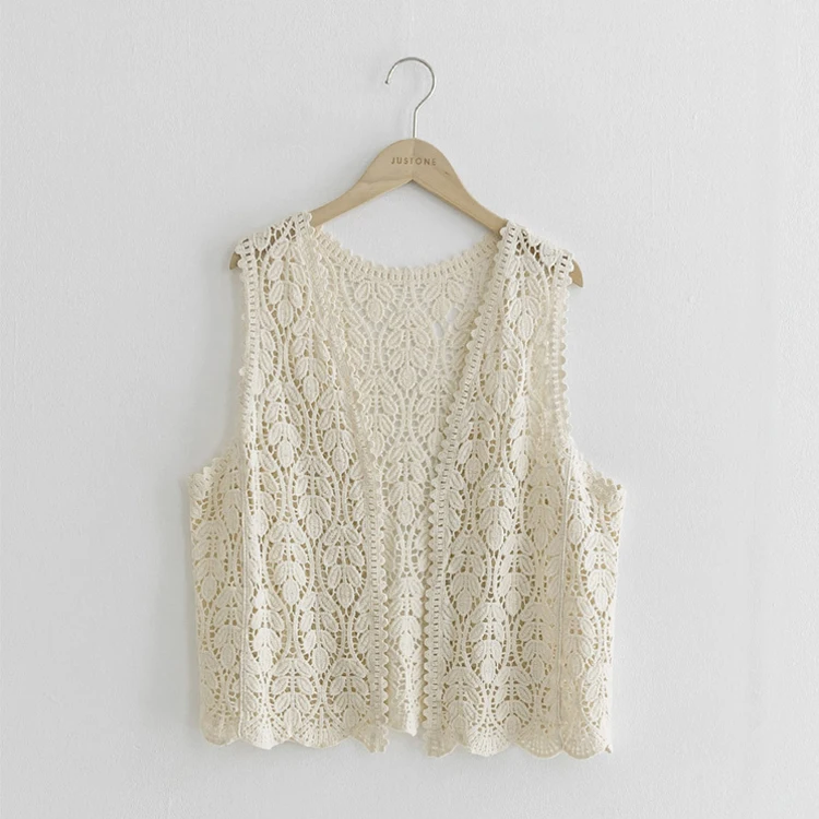Boho Crochet Knit Vest for Women Cover Up Floral Embroidery Sleeveless Open Front Cardigan Tops Summer Vacation Outfit