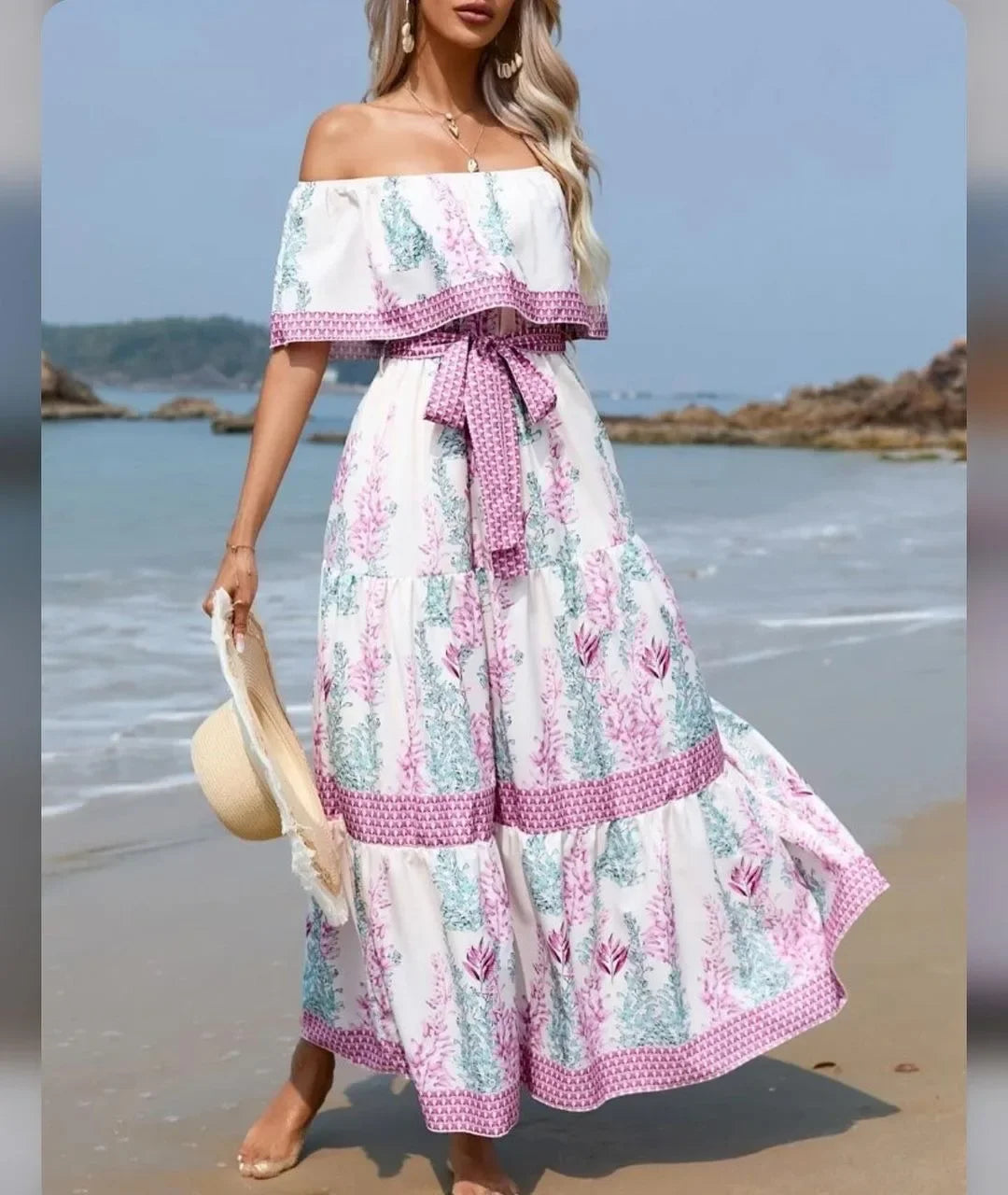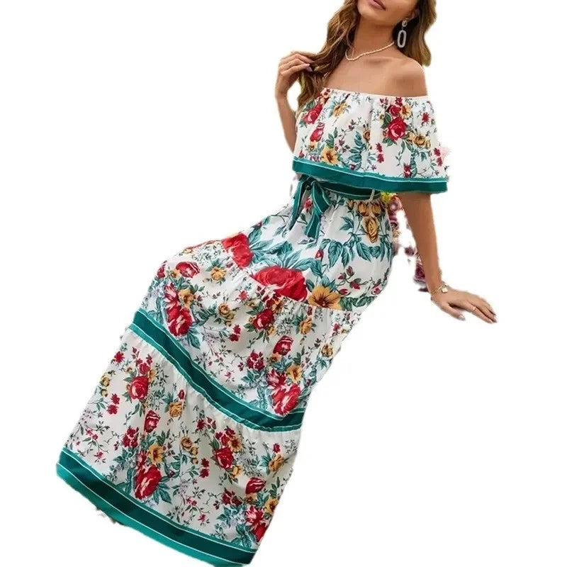 Boho Dress Women's One Shoulder Dress with Sexy and Fashionable Printed Long Style, Large Display, Summer New