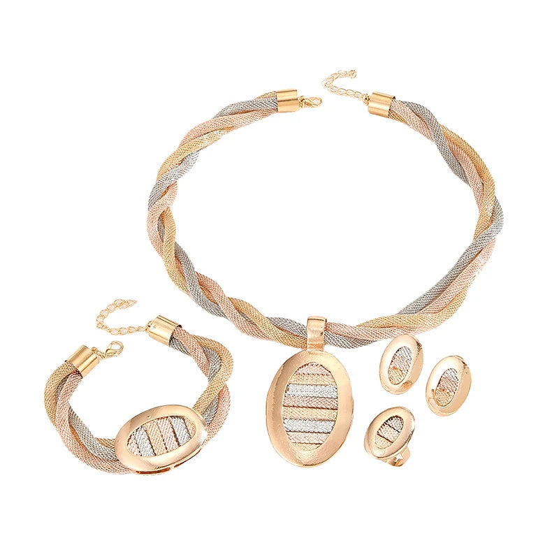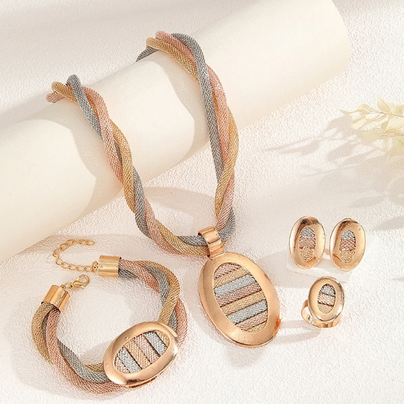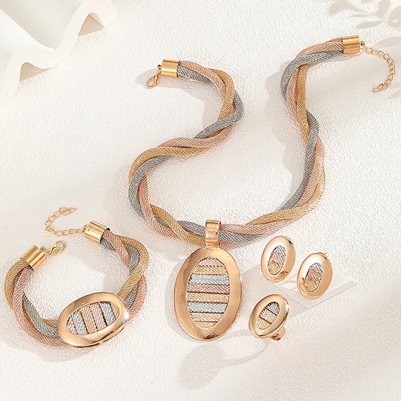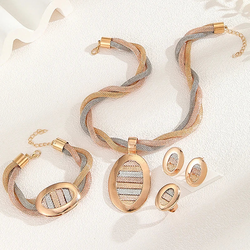 Bracelet Earrings Ring Gold Jewelry Set Ladies Necklace Bridal Wedding Luxury Jewelry