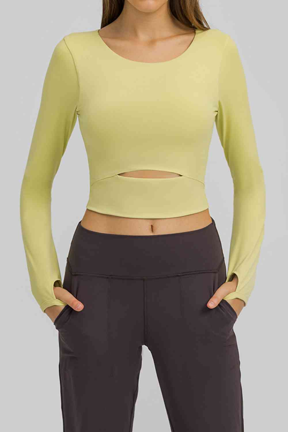 - Features: Long sleeve, thumb hole cuff, cut out, drop