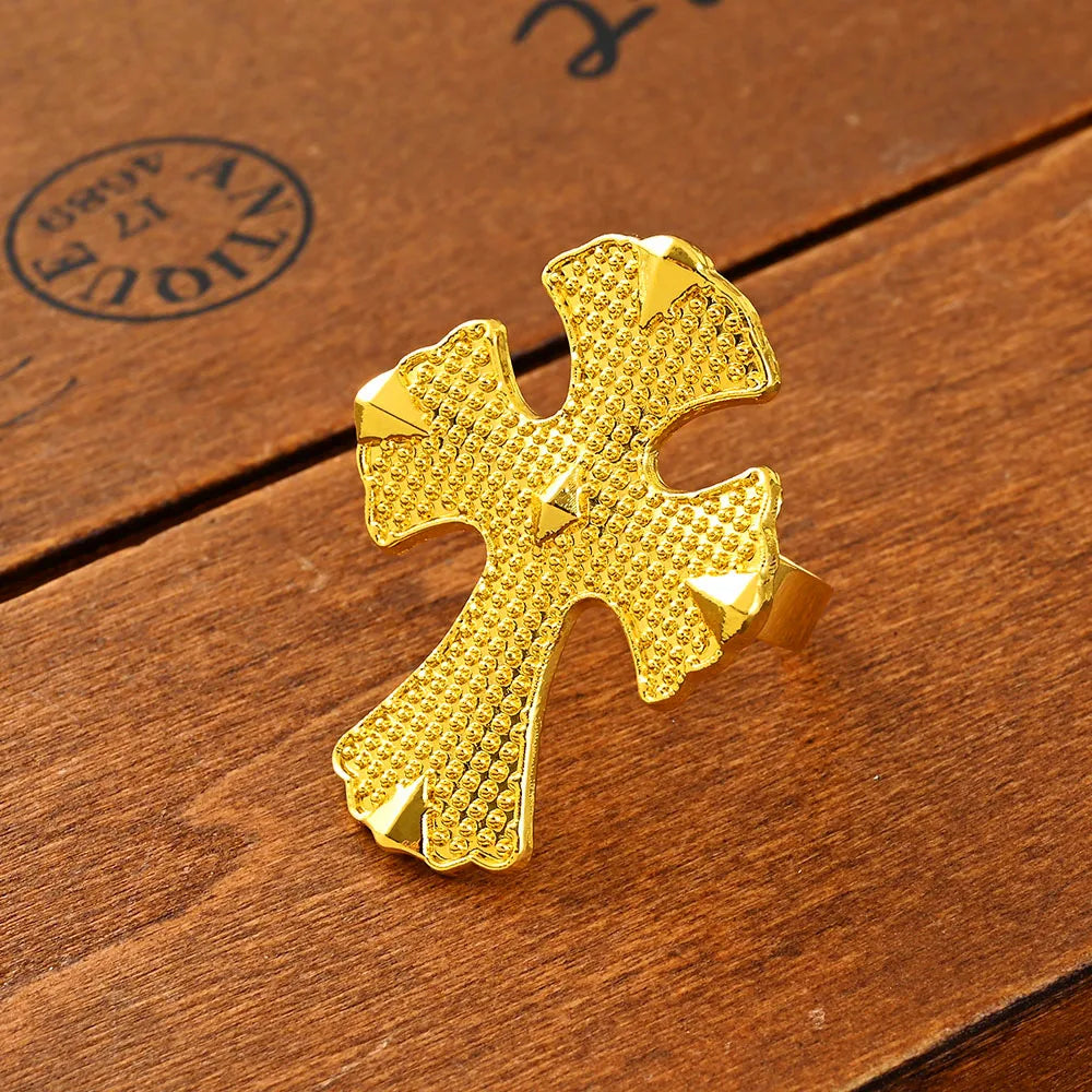 Ethiopian Big Cross Jewelry Sets Big Pendant Chain Earrings Ring Gold Color African Eritrea Traditional Nuptial Goods