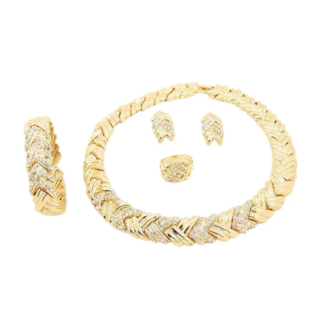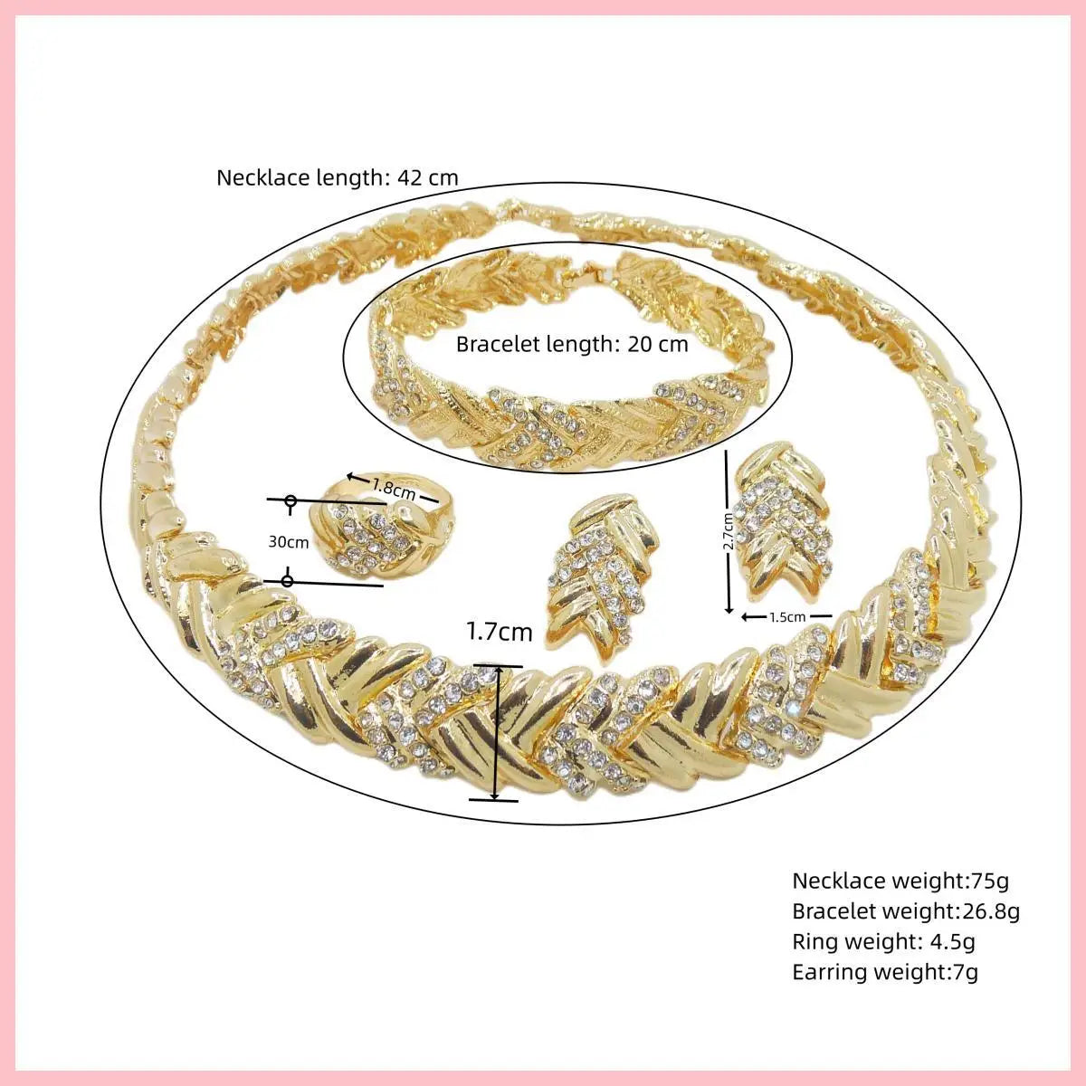 Product material: 18K gold jewelry set, women's clothing jewelry, made of alloy and rhinestones, surface treatment - gold plated, nickel and lead free