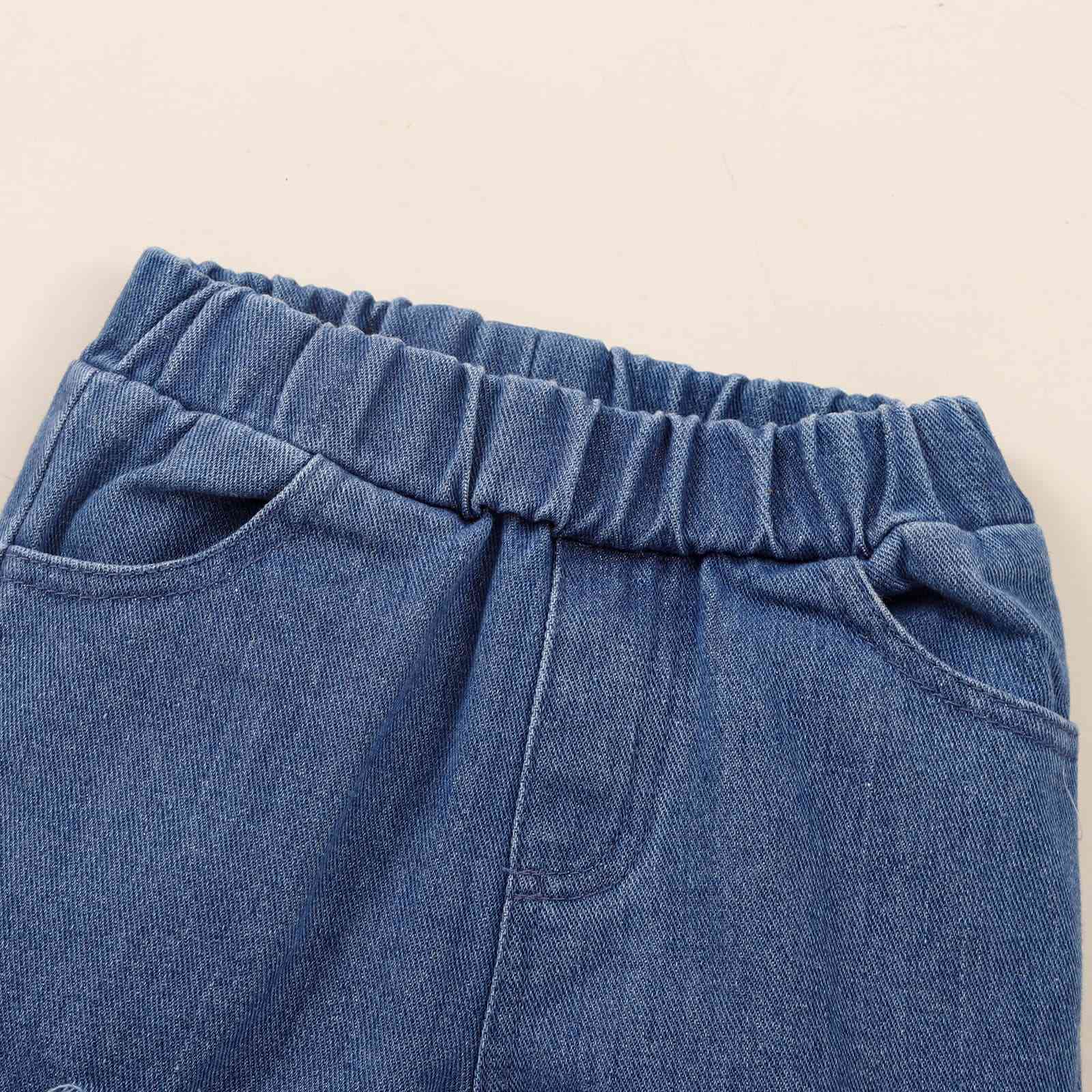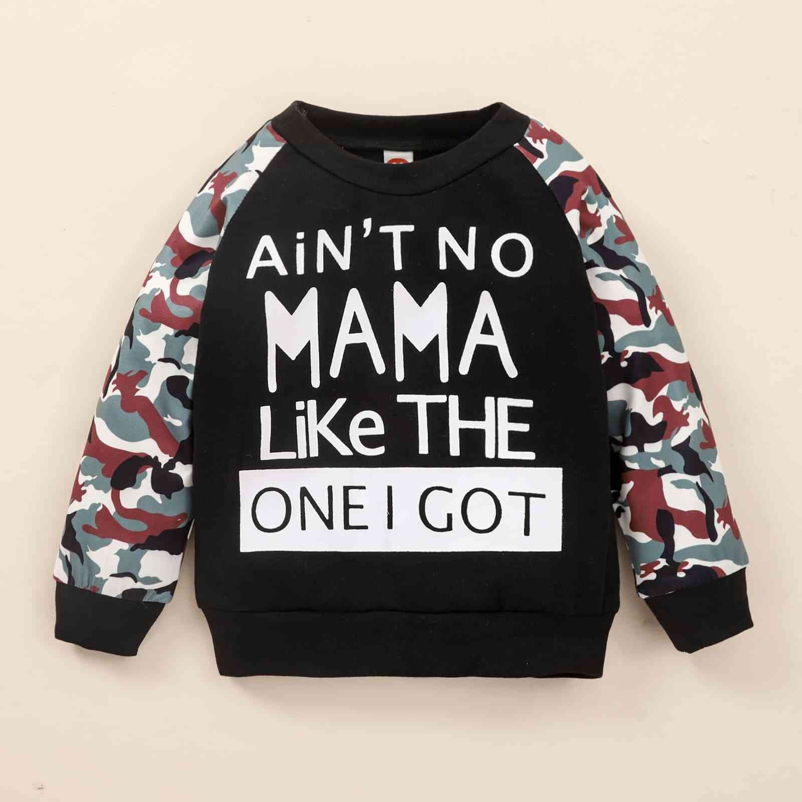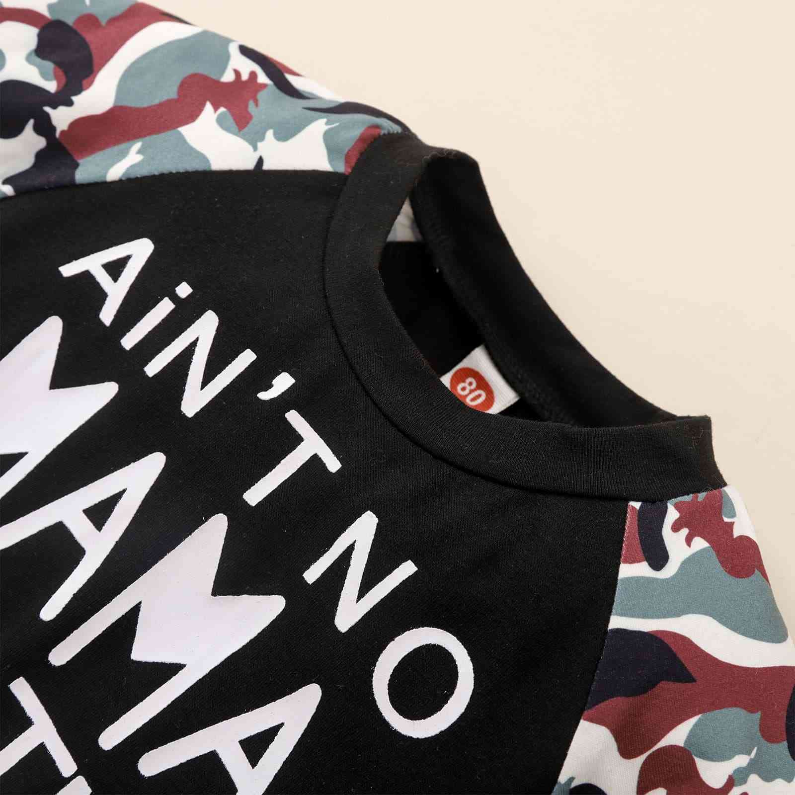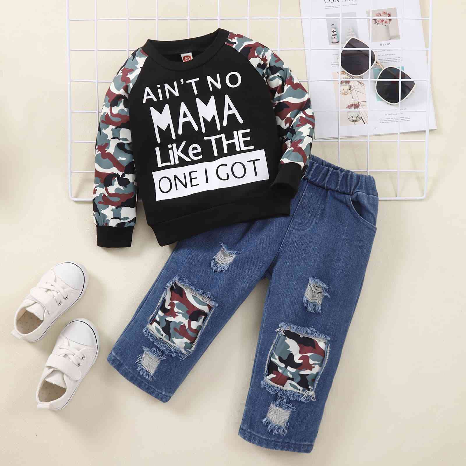 Kids Slogan Graphic Sweatshirt and Camoflague Patch Distressed Jeans Set