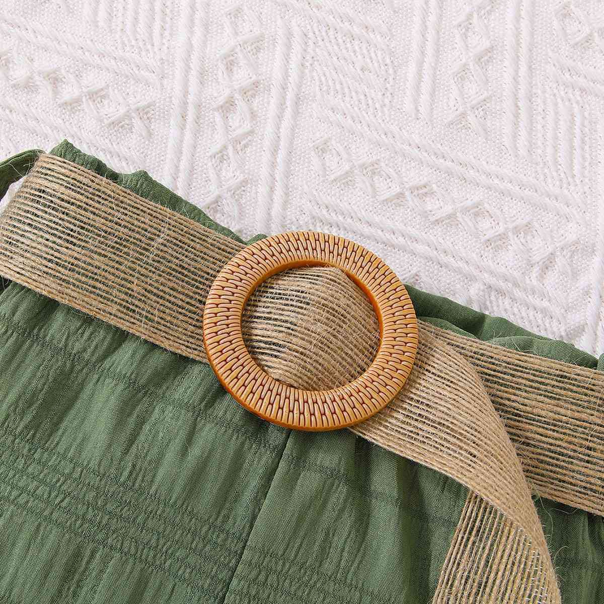 Kids Textured Bow Detail Top and Belted Shorts Set