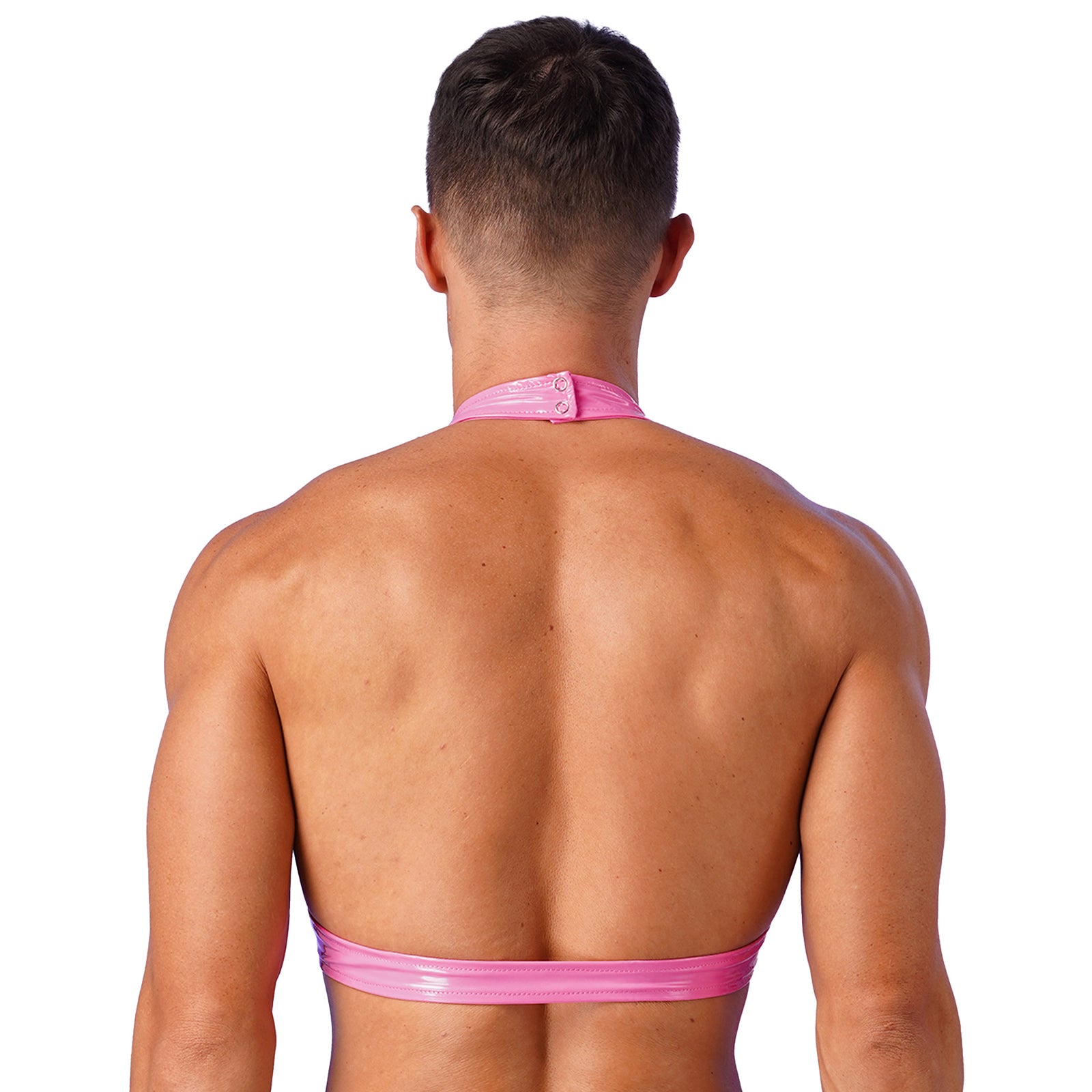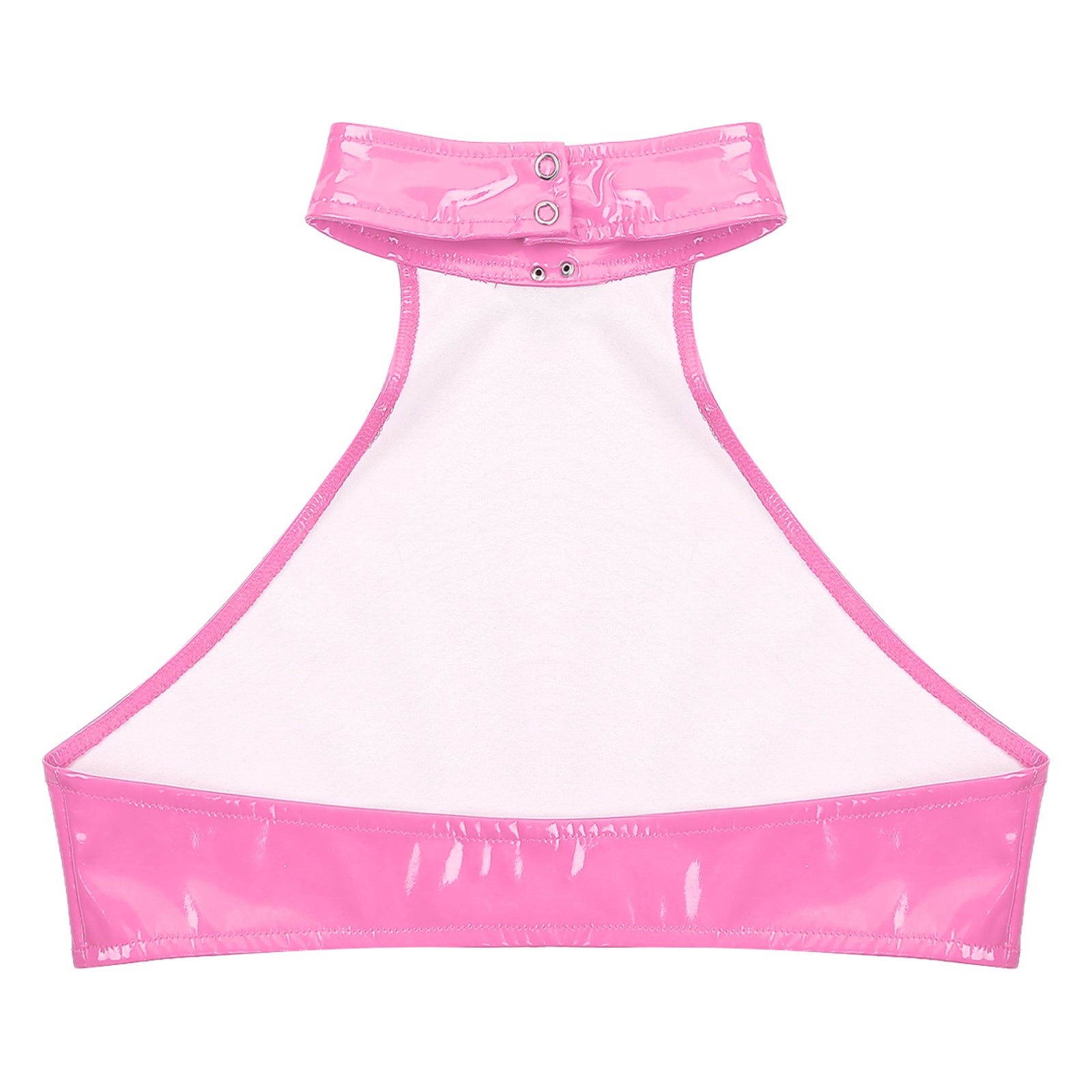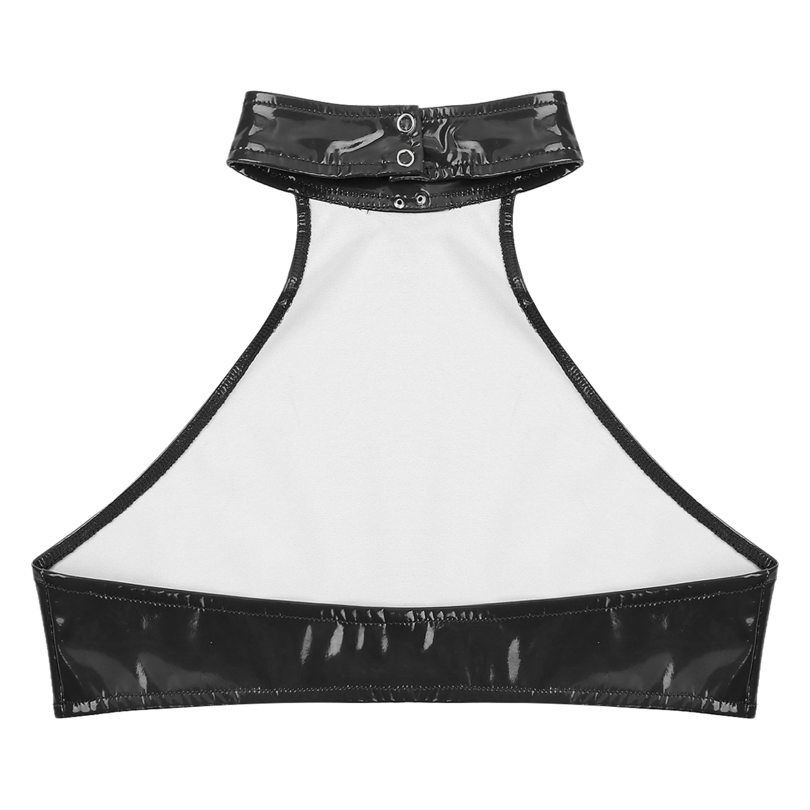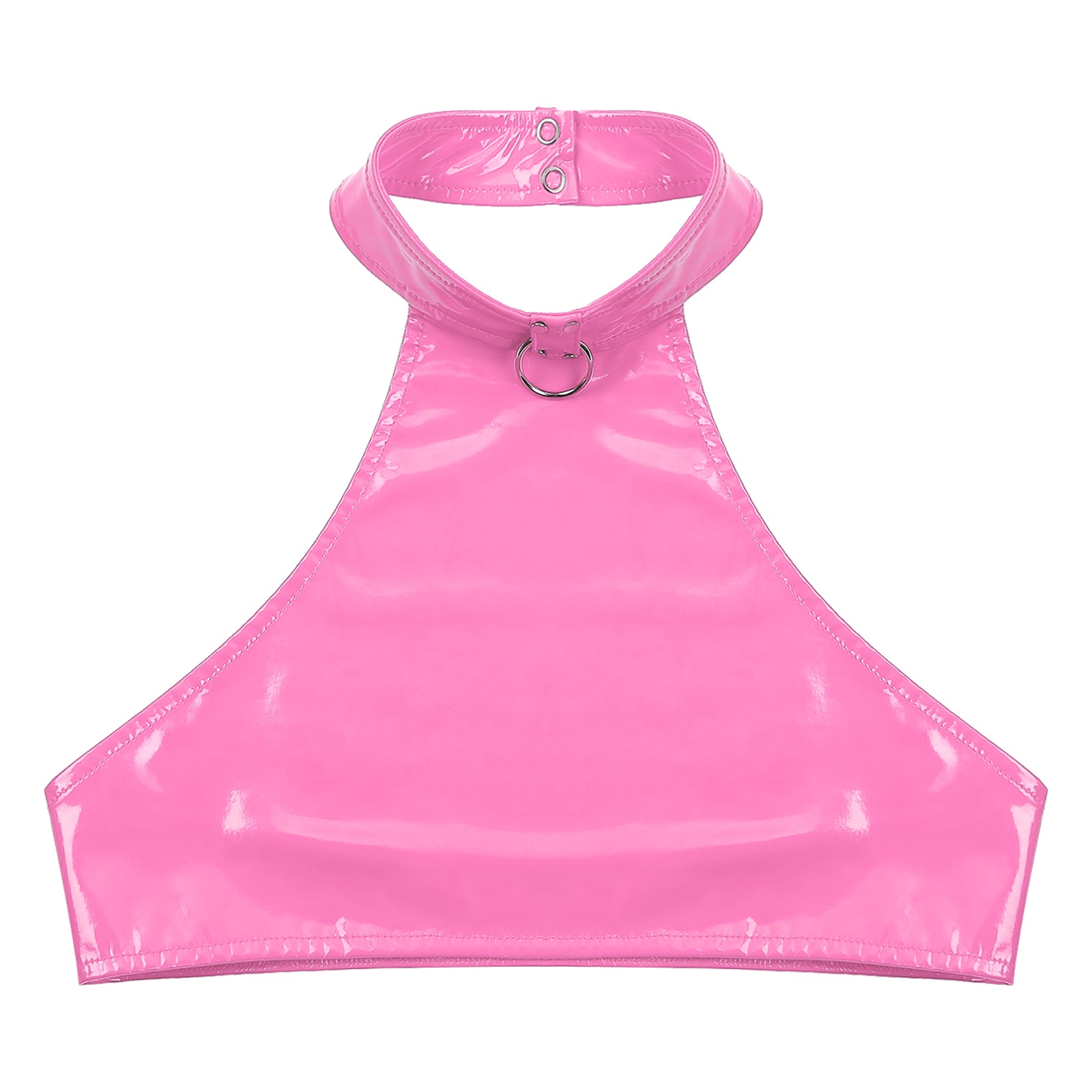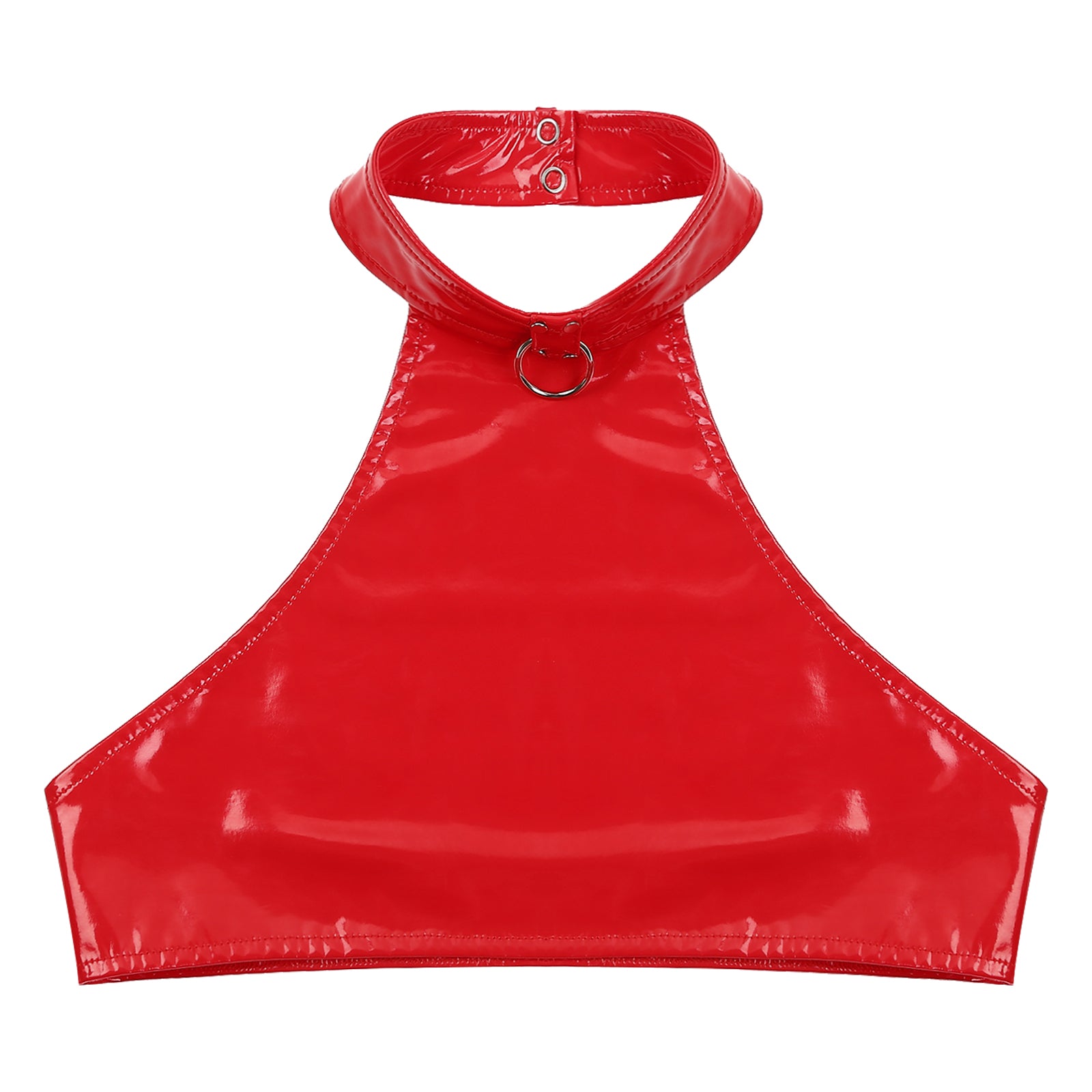 Men Fashion O Ring Halter Vest Crop Tops Wetlook Latex Backless Sleeveless Patent Leather Camisole for Party Club Music Festival