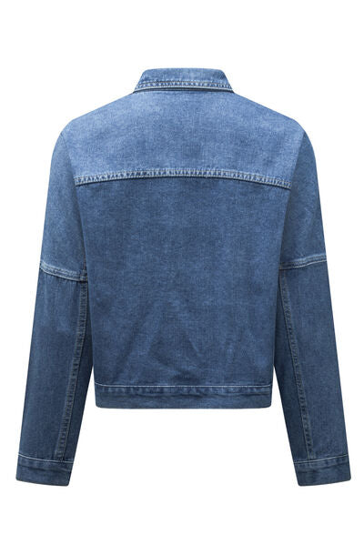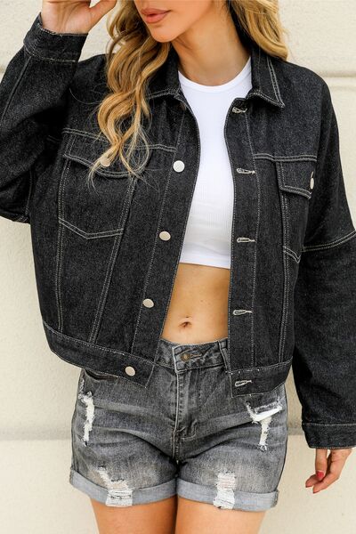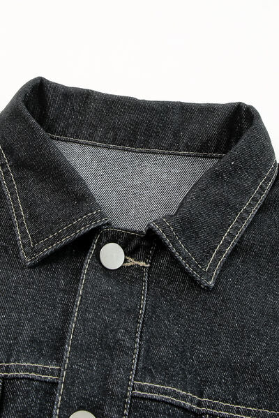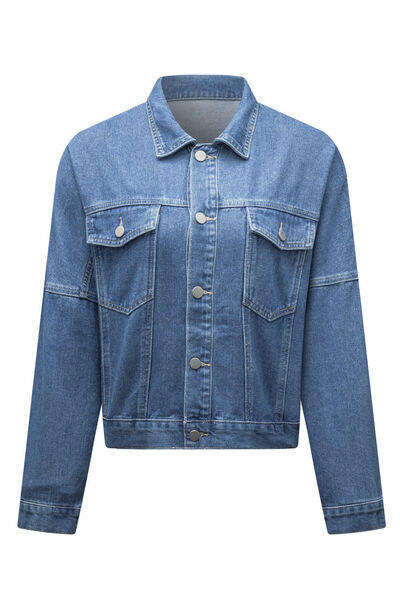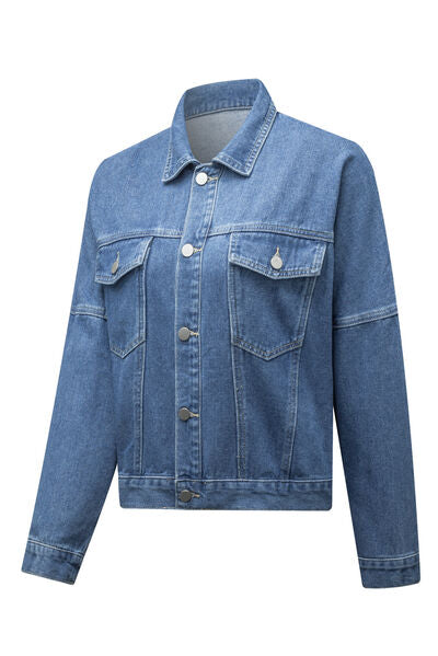 Pocketed Button Up Dropped Shoulder Denim Jacket