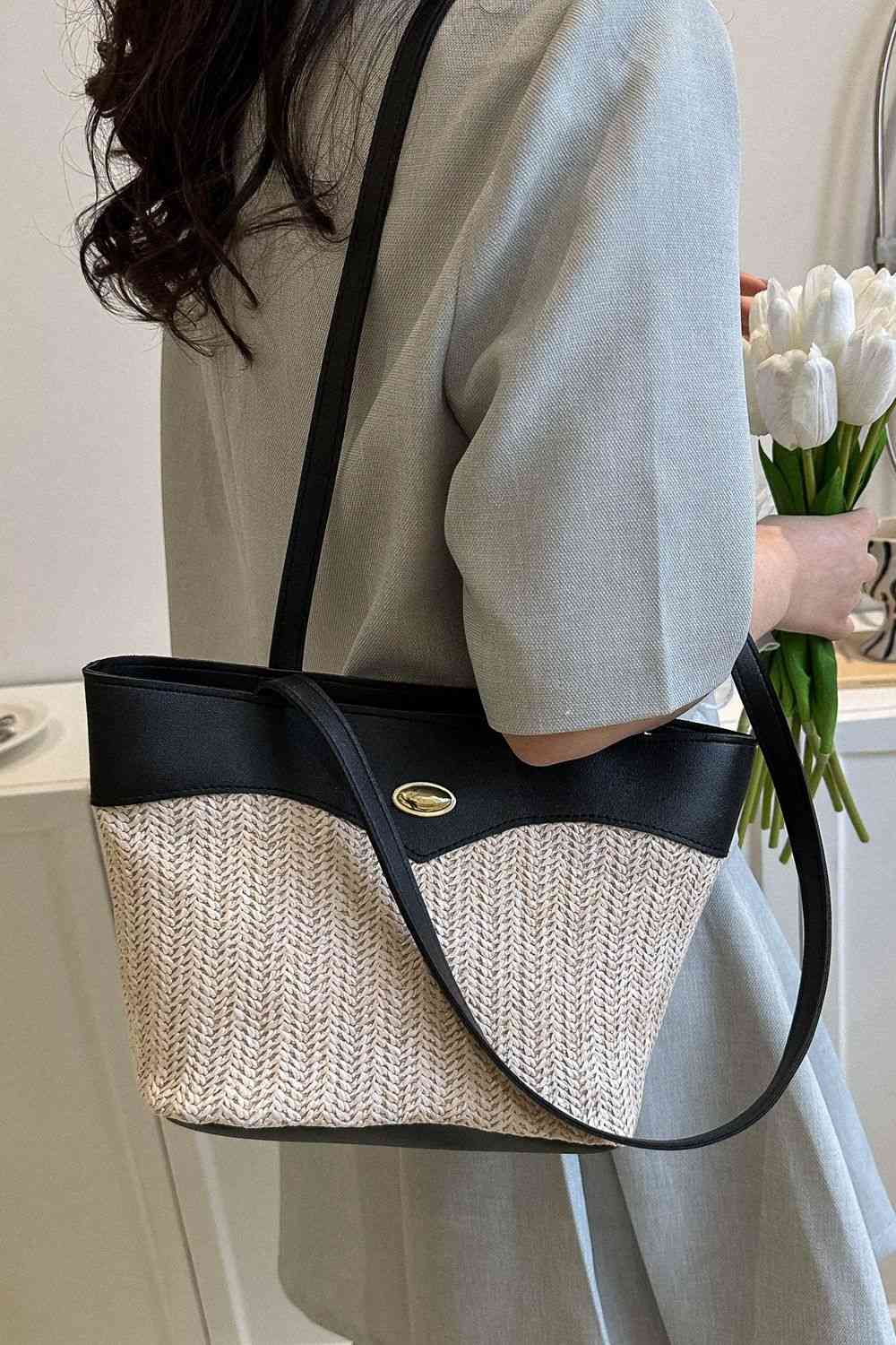 Two-Tone Straw PU Tote Bag