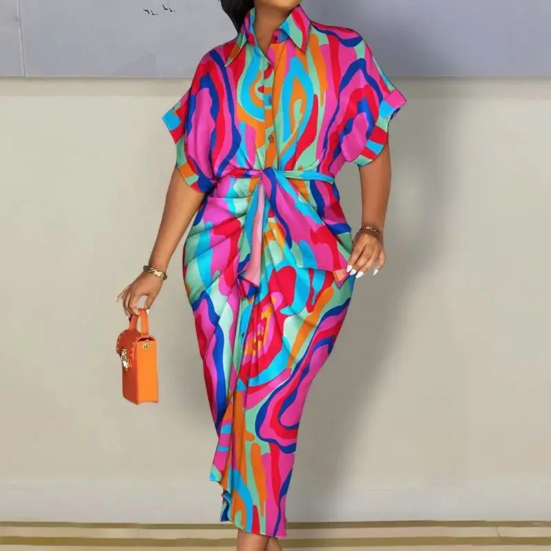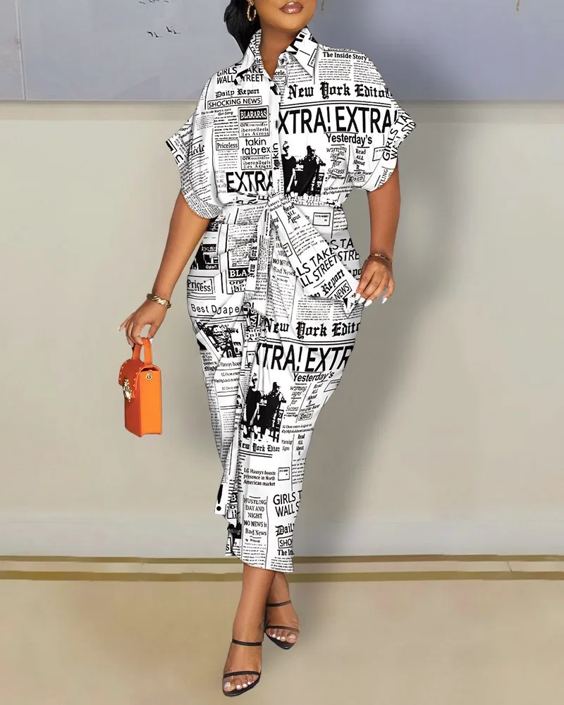 Women Boho Shirt Dress Summer Turn-down Collar Single Breasted Button Irregular Long Dress Female Sexy Letter Print Maxi Dresses