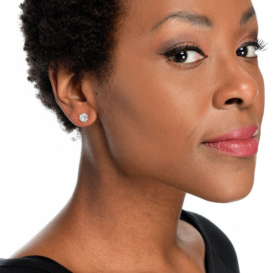 14K Gold Yellow Round Basket Setting Simulated Round Diamond Stud Earrings